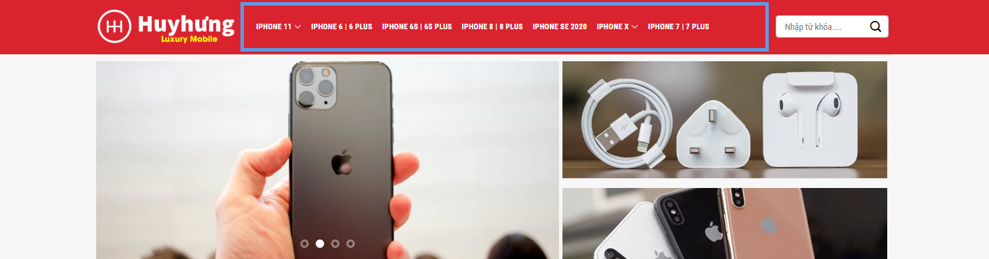 + Sử dụng menu sản phẩm của website: chọn loại sản phẩm muốn mua là điện thoại, máy tính bảng hay phụ kiện.