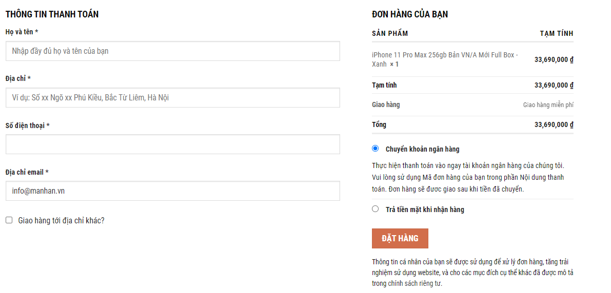 Sau khi chọn được sản phẩm ưng ý muốn mua, bạn tiến hành đặt hàng bằng cách: