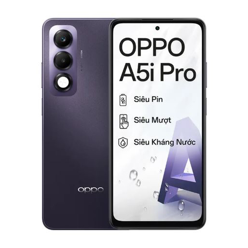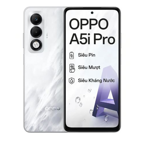 OPPO A5i Pro là phiên bản cao cấp hơn so với OPPO A5i được ra mắt chính thức tại Việt Nam vào cuối tháng 07/2025 trong phân khúc smartphone tầm trung. OPPO A5i Pro gây chú ý khi được trang bị chip Snapdragon 6s Gen 1, màn LCD 6.67 inch 90Hz, camera 50MP, pin 6000mAh và sạc nhanh 45W.