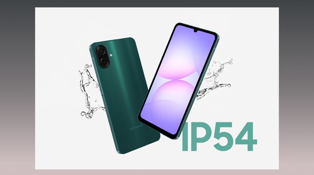 Galaxy A07 nổi bật với chuẩn kháng nước và bụi IP54 tiên tiến. Trang bị này bảo vệ thiết bị hiệu quả khỏi bụi bẩn và các tia nước bắn từ mọi phía. Nhờ đó, người dùng có thể thoải mái sử dụng điện thoại dưới trời mưa phùn nhẹ hoặc trong môi trường nhiều bụi mà không lo hư hại.