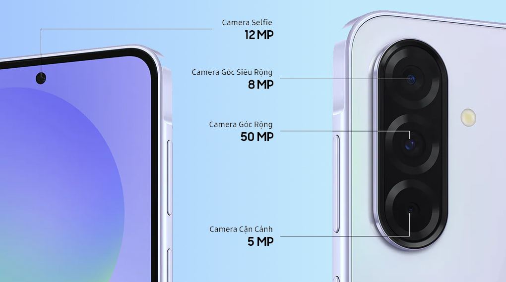 Chiếc điện thoại Samsung này được trang bị hệ thống camera sau ba ống kính, đáp ứng mọi nhu cầu chụp ảnh của bạn. Camera chính 50 MP cho những bức ảnh sắc nét, chi tiết và màu sắc tự nhiên. Camera góc siêu rộng 8 MP giúp bạn ghi lại những khung cảnh rộng lớn một cách ấn tượng. Camera macro 5 MP cho phép bạn khám phá thế giới cận cảnh đầy thú vị.