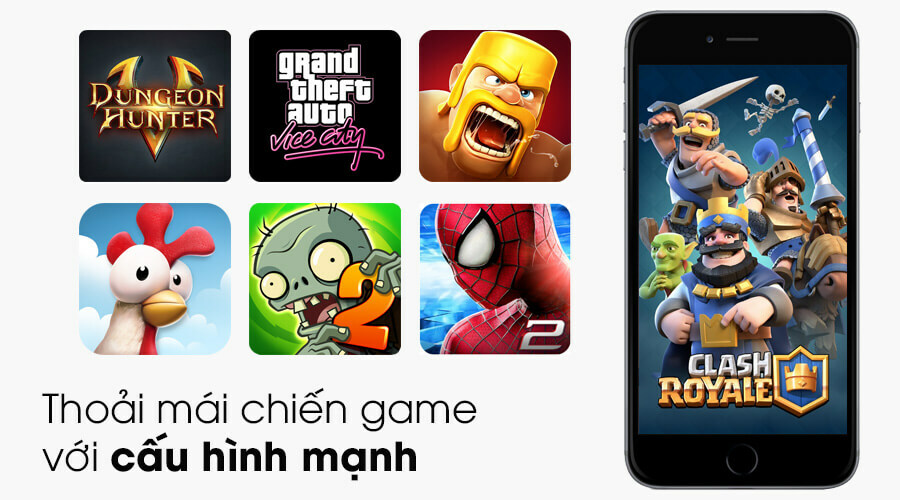 Xứng tầm với giá bán, iPhone 6s được trang bị vi xử lý Apple A9 64 bit mạnh mẽ với tốc độ GPU đồ họa tốt hơn 90%. Nhờ đó, người dùng sẽ có những trải nghiệm siêu mượt mà, thoải mái load cả những game 3D đồ họa cao.