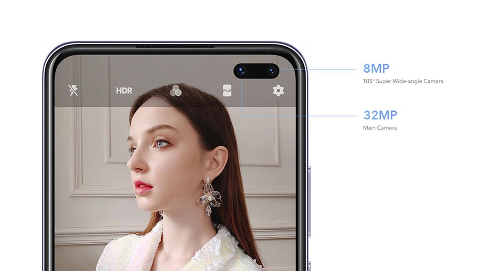 Cụm camera selfie kép của Vivo V19 gồm camera chính 32MP cùng với camera góc siêu rộng 8MP. Trải nghiệm thực tế cho thấy sự kết hợp của hai camera này đem tới những khuôn hình “tự sướng” xuất sắc, Vivo đã áp dụng công nghệ AI nhằm hỗ trợ mở rộng góc ảnh chụp selfie thêm 25.6 độ, đồng thời tự chỉnh sửa độ méo của khuôn hình khi chụp góc rộng để cho ra những khuôn hình sau cùng thật sự chân thực và rực rỡ.